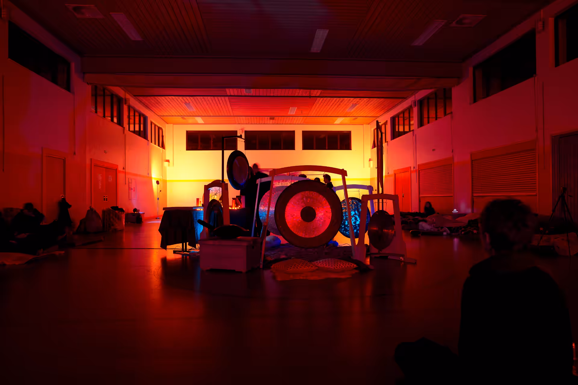 Beim Gongbad stehen die Gongs im Vordergrund, es wird intensiver Gongsound zu hören und zu fühlen sein. Andere Instrumente finden sekundär Verwendung.